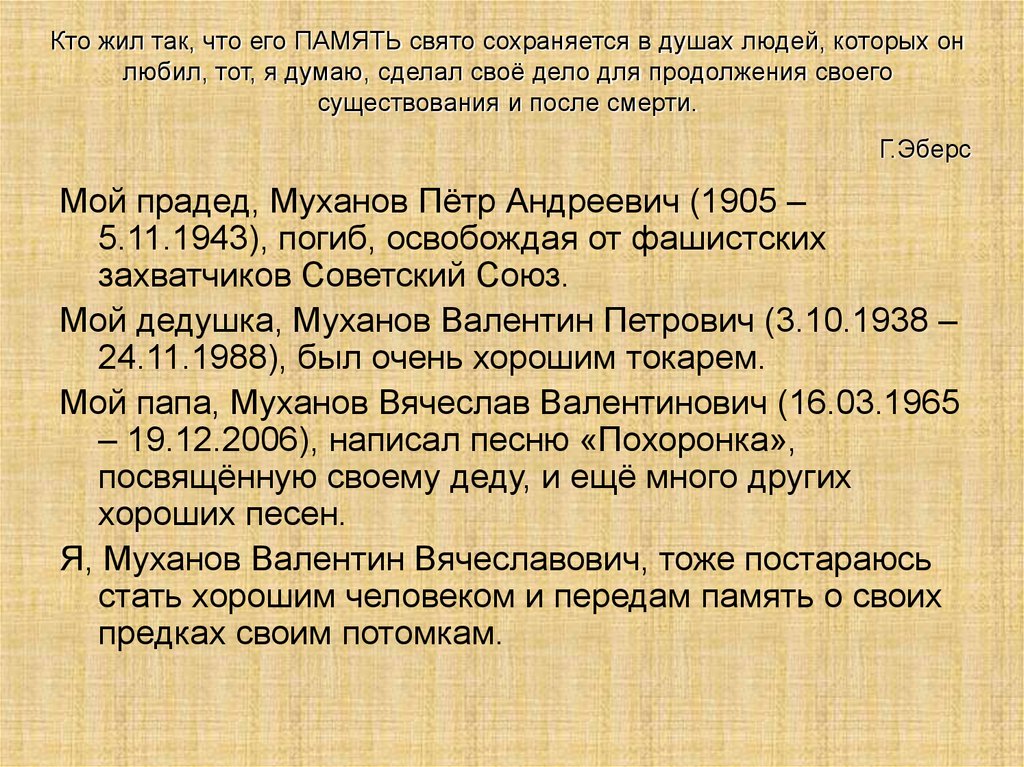 Кто жил так, что его ПАМЯТЬ свято сохраняется в душах людей, которых онлюбил, тот, я думаю, сделал своё дело для продолжения своего