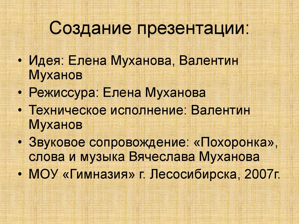 Создание презентации:• Идея: Елена Муханова, Валентин