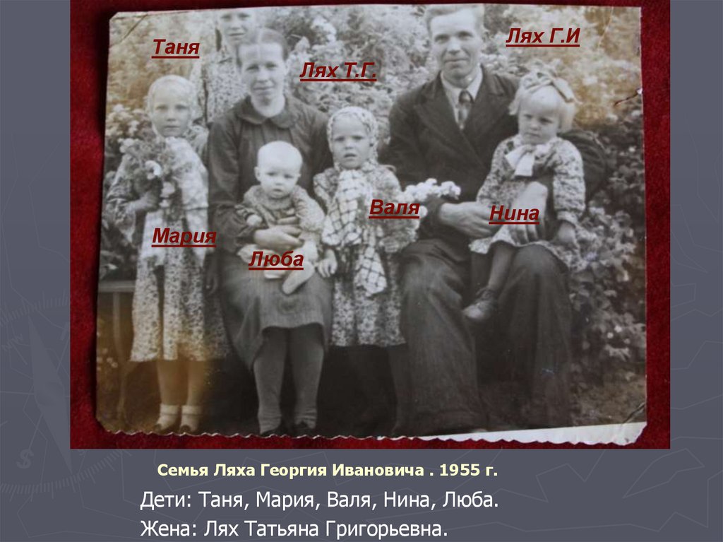 Дети: Таня, Мария, Валя, Нина, Люба.
