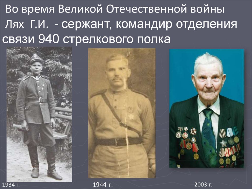 Во время Великой Отечественной войныЛях Г.И. - сержант, командир отделения