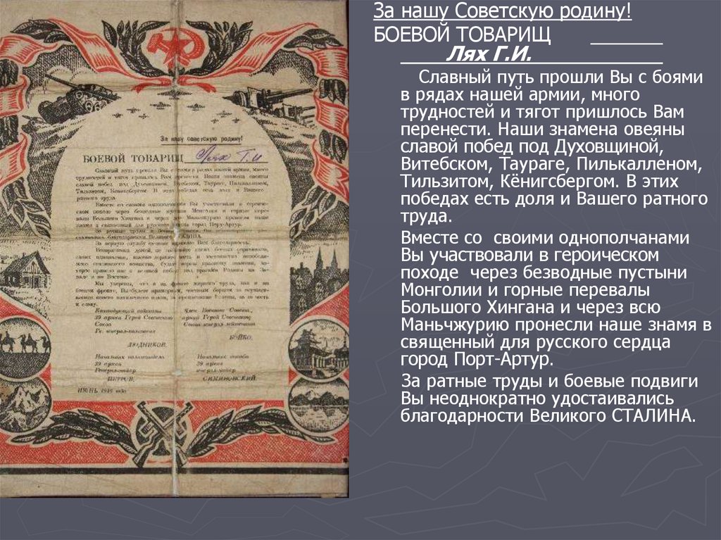 БЛАГОДАРНОСТЬГенералиссимуса Советского