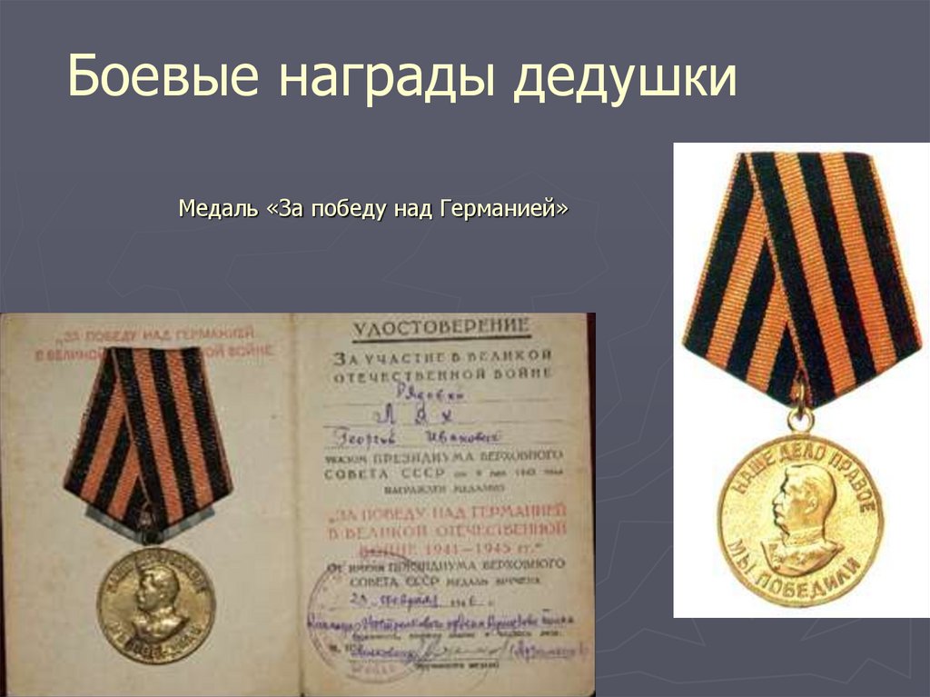 Боевые награды дедушкиМедаль «За победу над Германией»