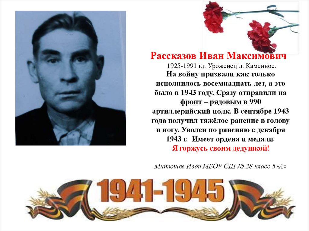 Рассказов Иван Максимович1925-1991 г.г. Уроженец д. Каменное.