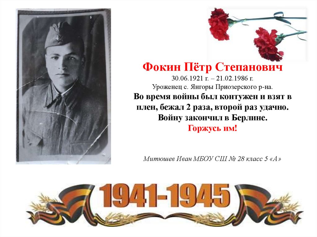 Уроженец с. Янгоры Приозерского р-на.