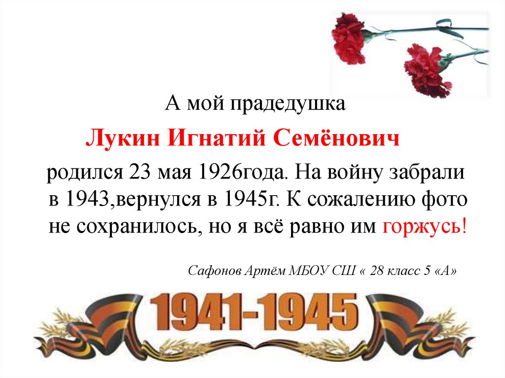 А мой прадедушкаЛукин Игнатий Семёнович