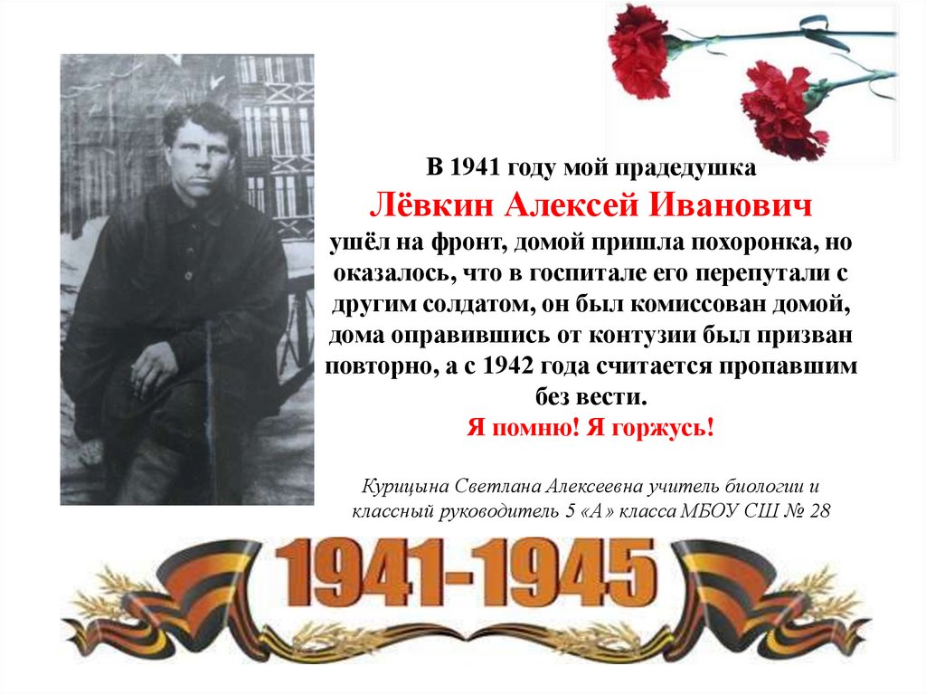 В 1941 году мой прадедушкаЛёвкин Алексей Иванович