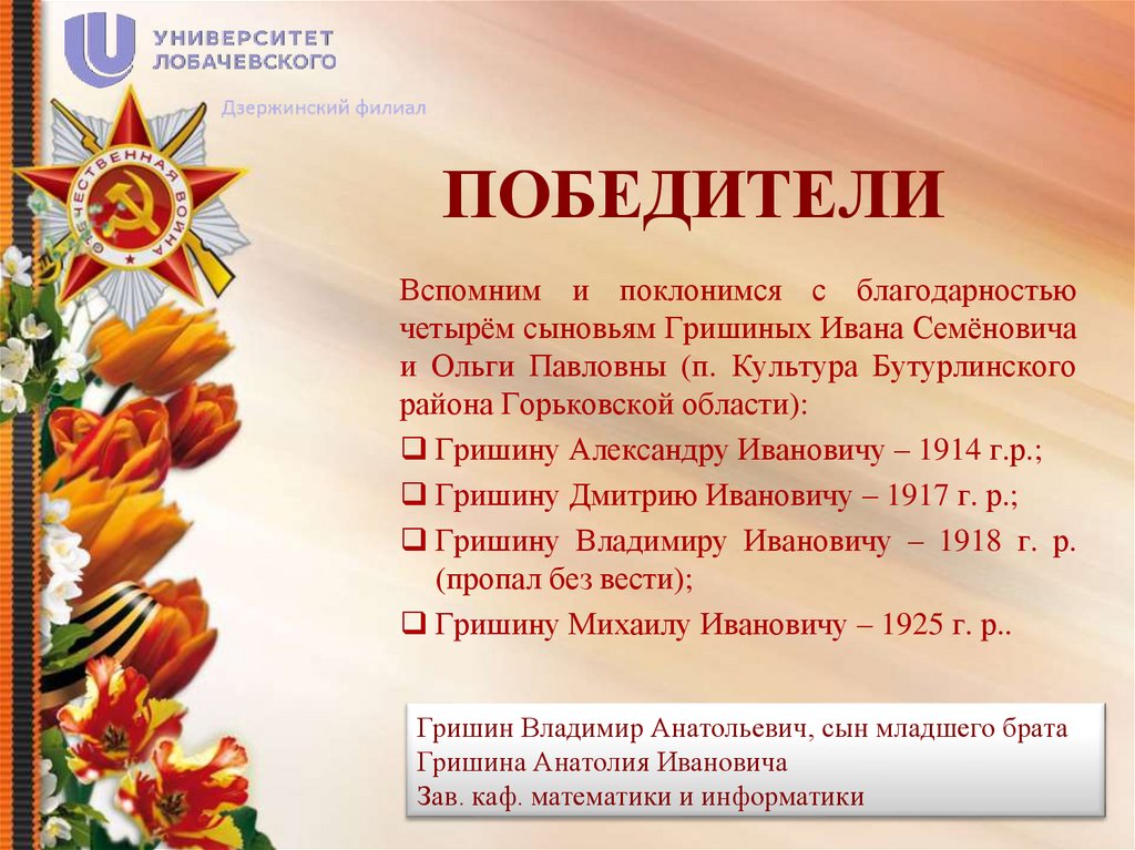 ПОБЕДИТЕЛИВспомним и поклонимся с благодарностью