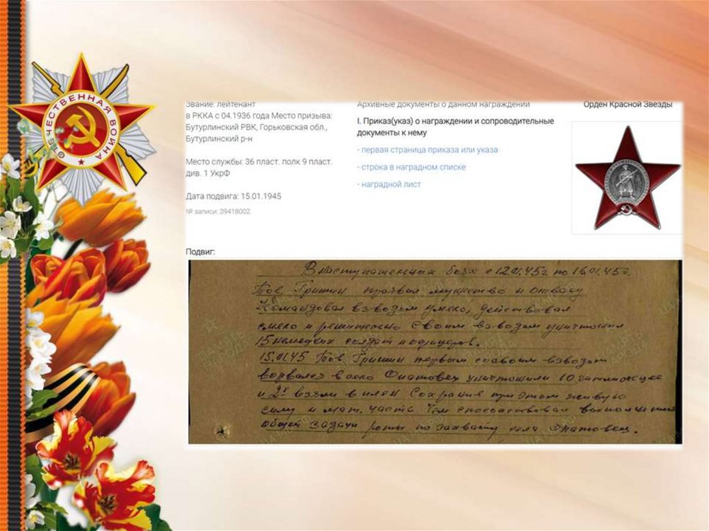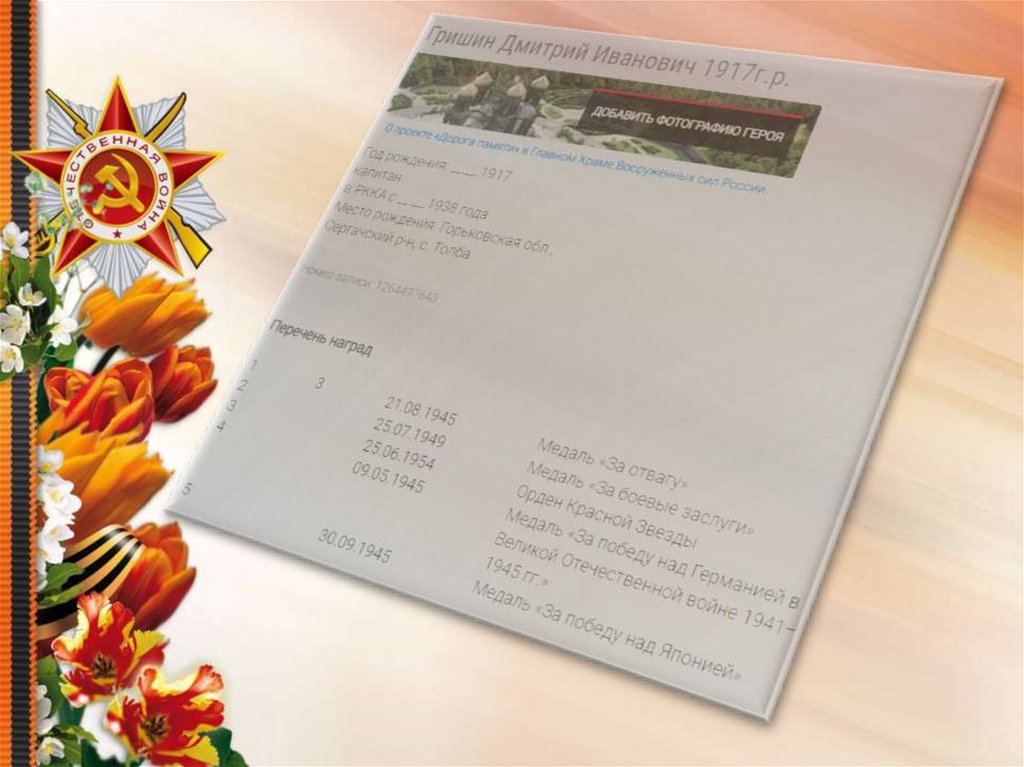 Гришину Дмитрию Ивановичу – 1917 г. р.;