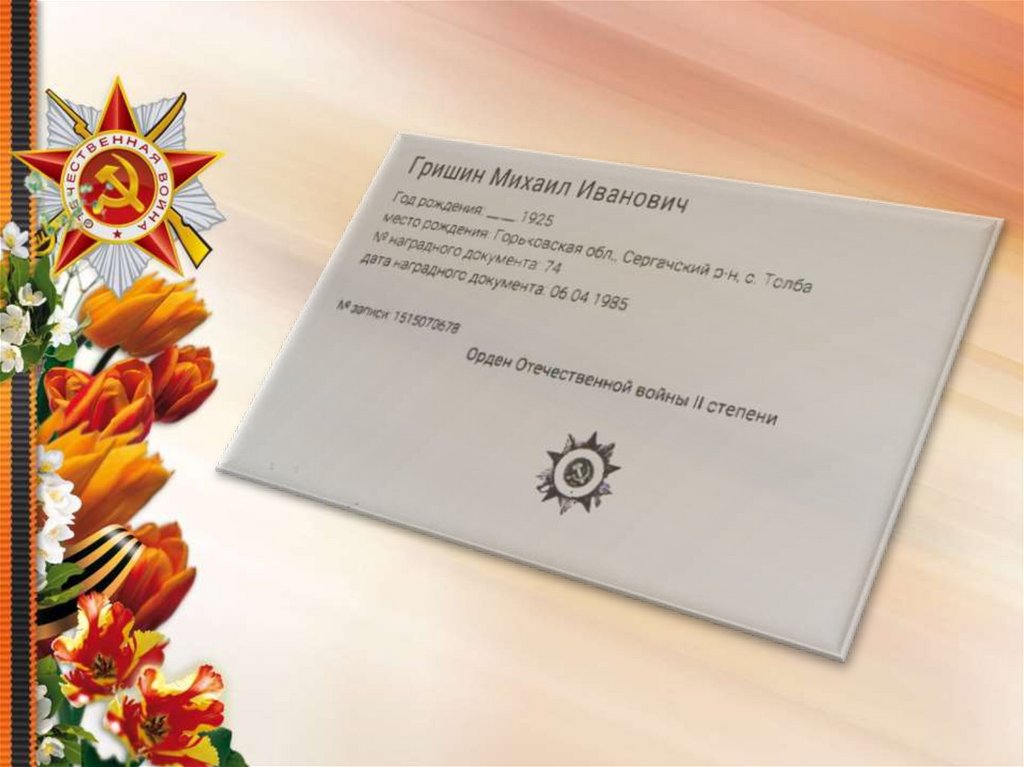 Гришину Михаилу Ивановичу – 1925 г. р..