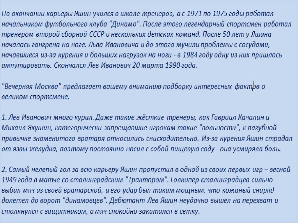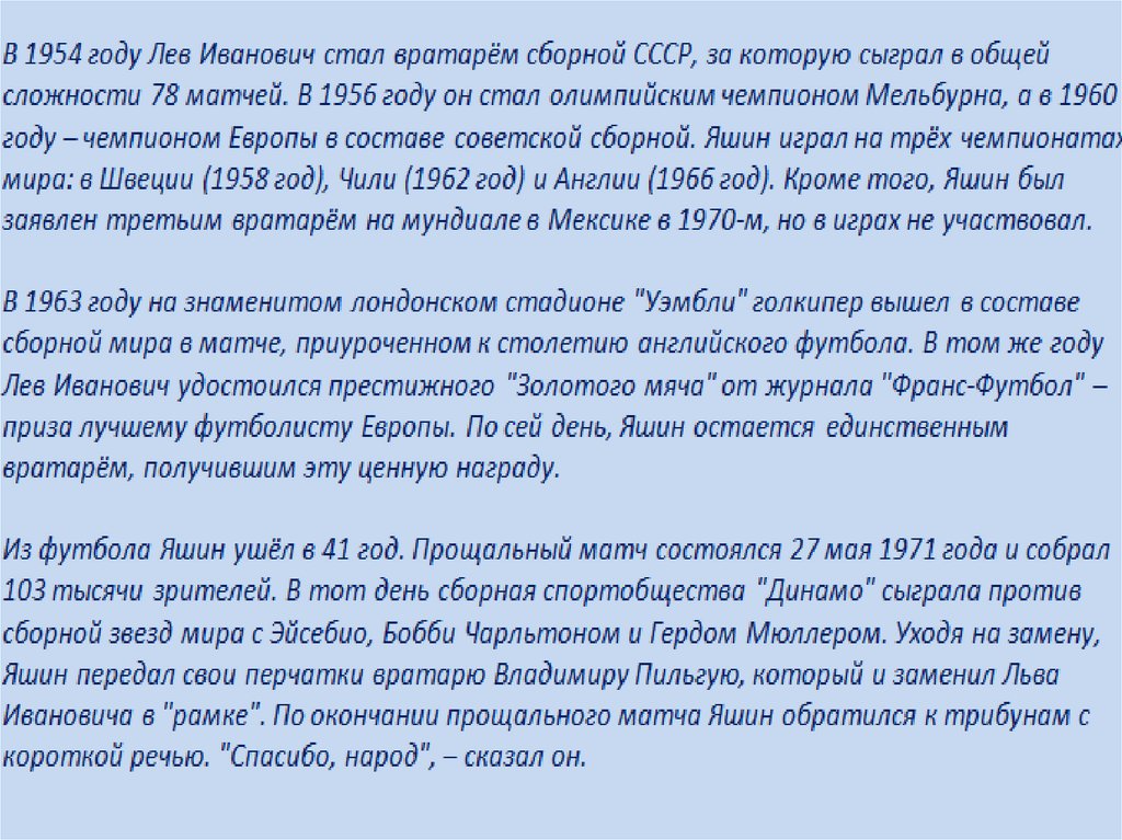 Легенда спорта. Лев Яшин - знаменитый футбольный вратарь