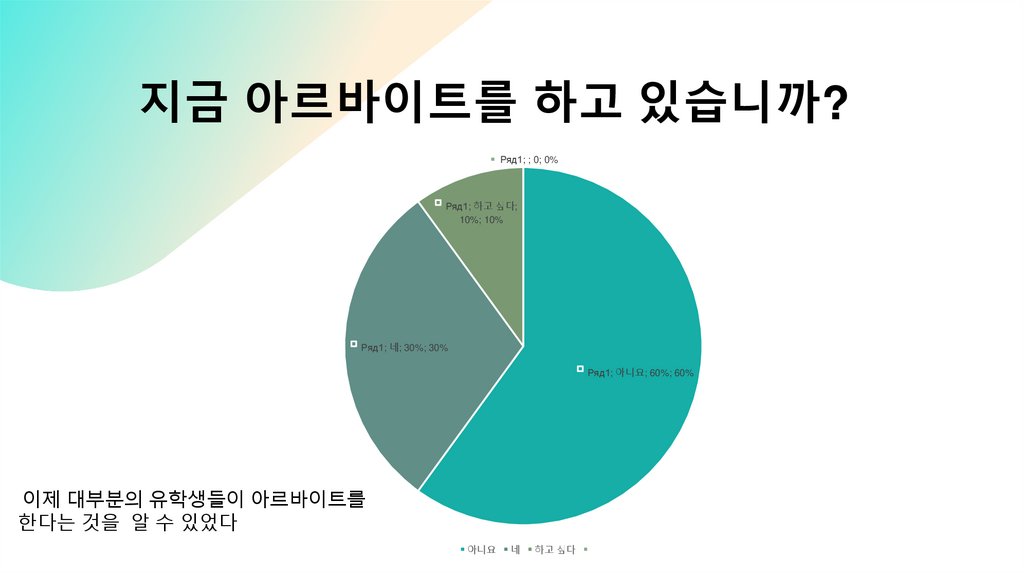 지금 아르바이트를 하고 있습니까?Ряд1; ; 0; 0%