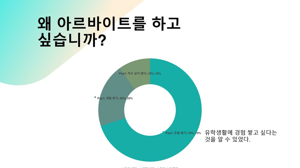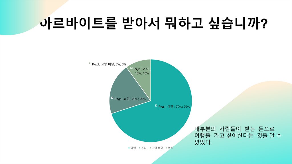 아르바이트를 받아서 뭐하고 싶습니까?Ряд1; 고향 비행; 0%; 0%