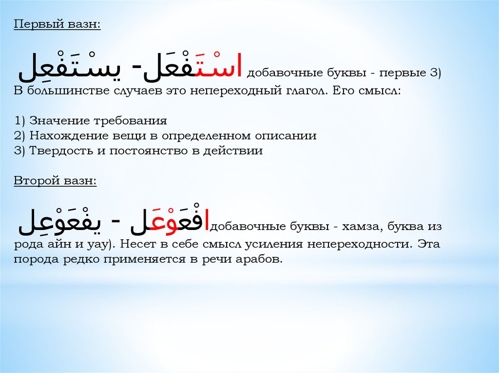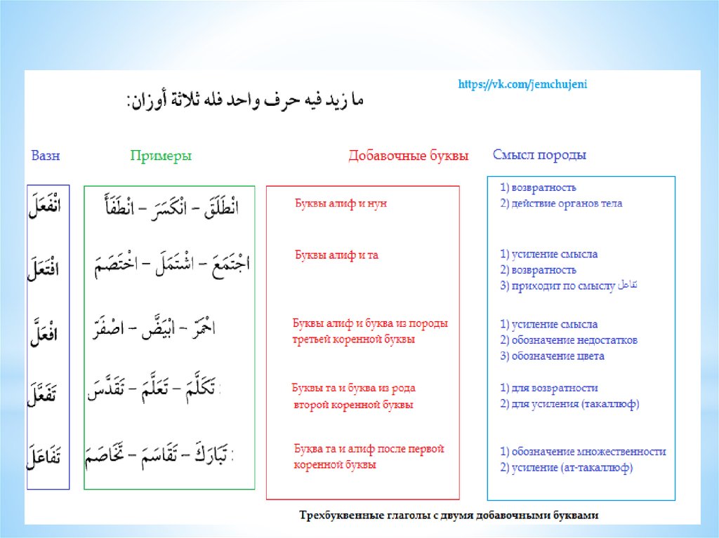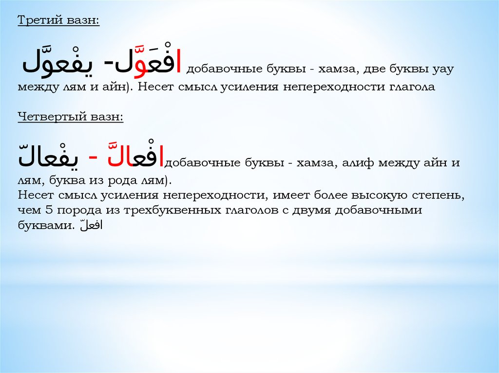 Третий вазн:ْ - ا ْف َعولдобавочные буквы - хамза, две буквы уау