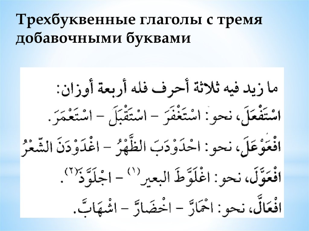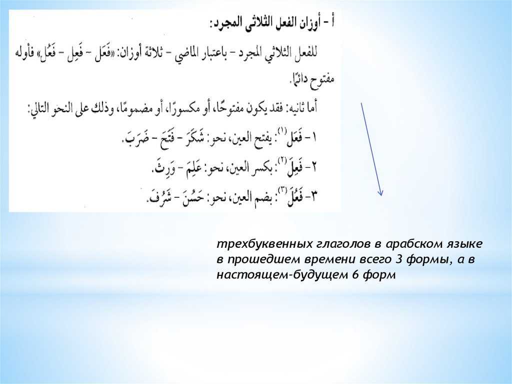 трехбуквенных глаголов в арабском языкев прошедшем времени всего 3 формы, а в