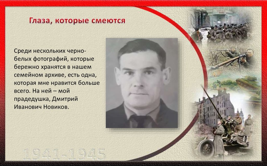 Сайт «Память народа»: https://pamyat-naroda.ru/heroes/isp chelovek_spisok7870477/?backurl=%2Fheroes%2F%3Fadv_Я смотрю на его портрет и замечаю, что глаза прадедушки будто бы смеются.