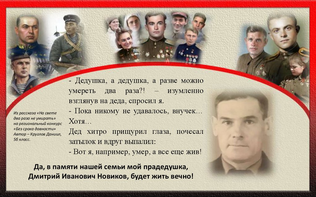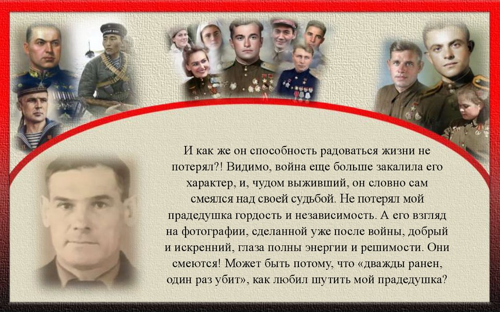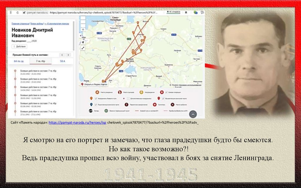 Ведь прадедушка прошел всю войну, участвовал в боях за снятие Ленинграда.