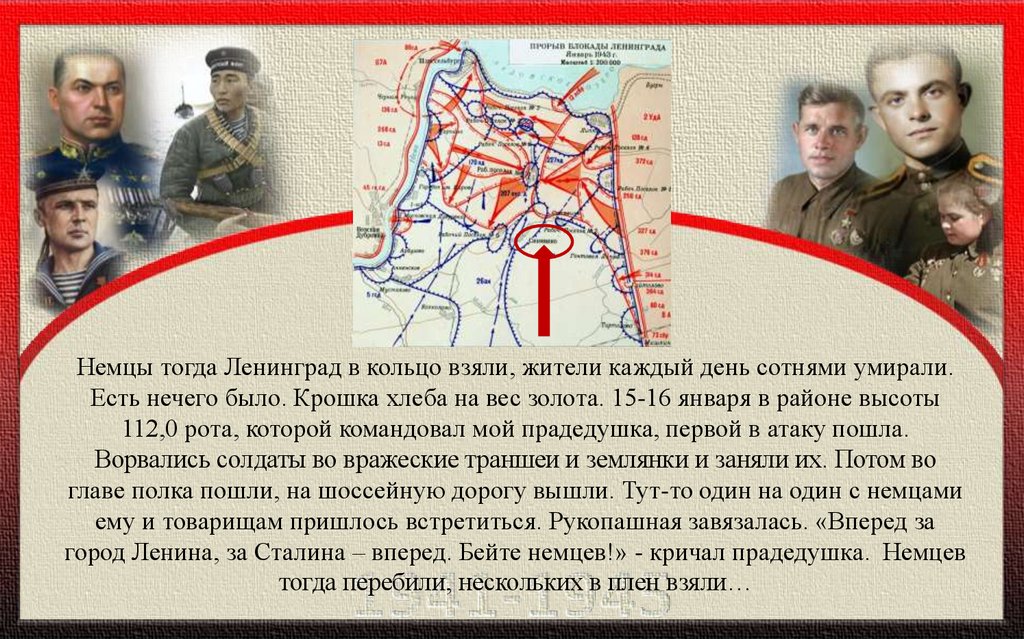 Немцы тогда Ленинград в кольцо взяли, жители каждый день сотнями умирали.Есть нечего было. Крошка хлеба на вес золота. 15-16 января в районе высоты