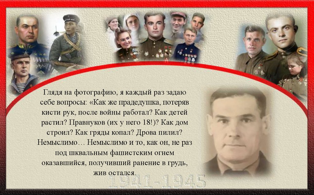 Глядя на фотографию, я каждый раз задаюсебе вопросы: «Как же прадедушка, потеряв