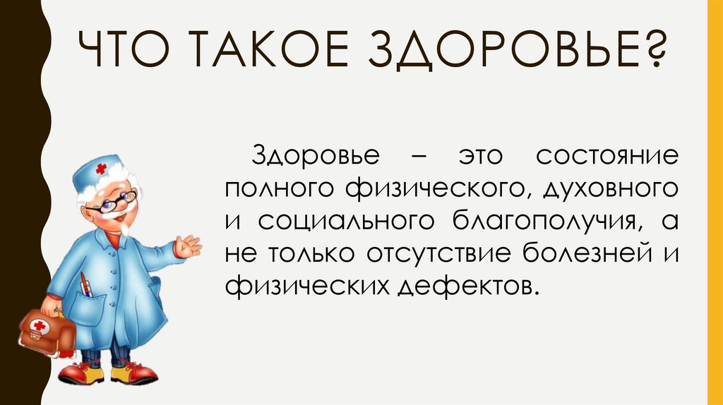 ЧТО ТАКОЕ ЗДОРОВЬЕ?Здоровье – это состояние