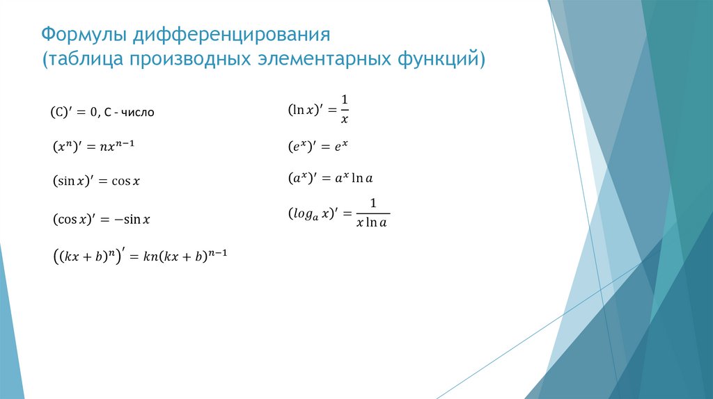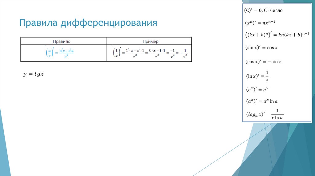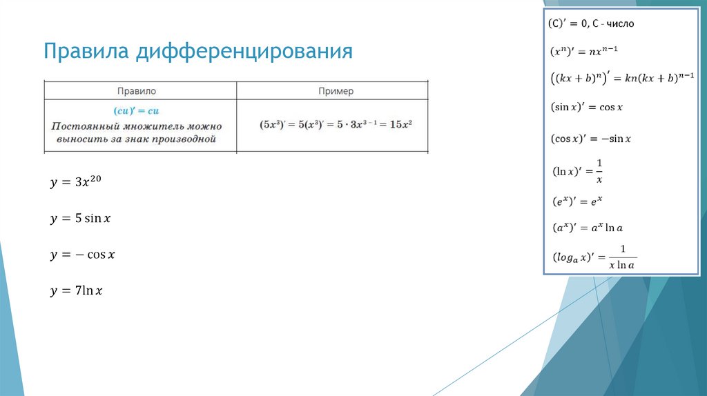 Правила дифференцирования