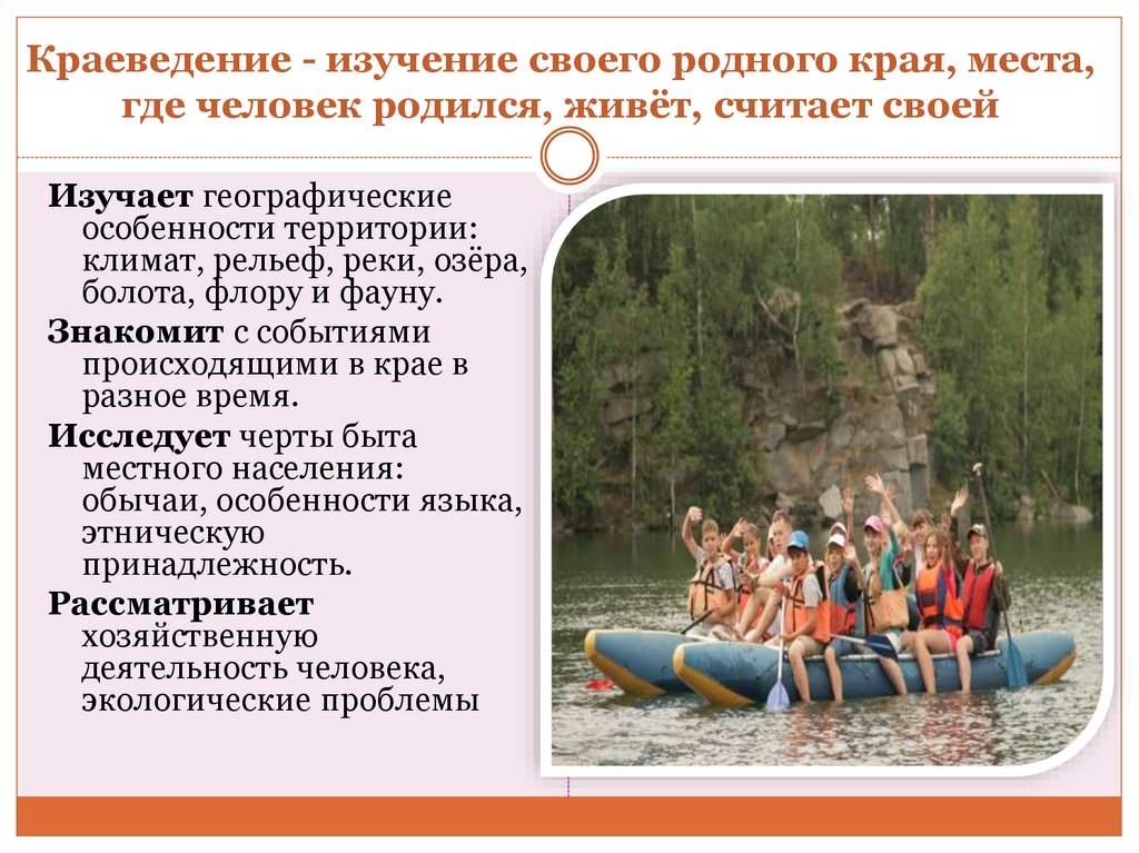 Краеведение - изучение своего родного края, места,где человек родился, живёт, считает своей