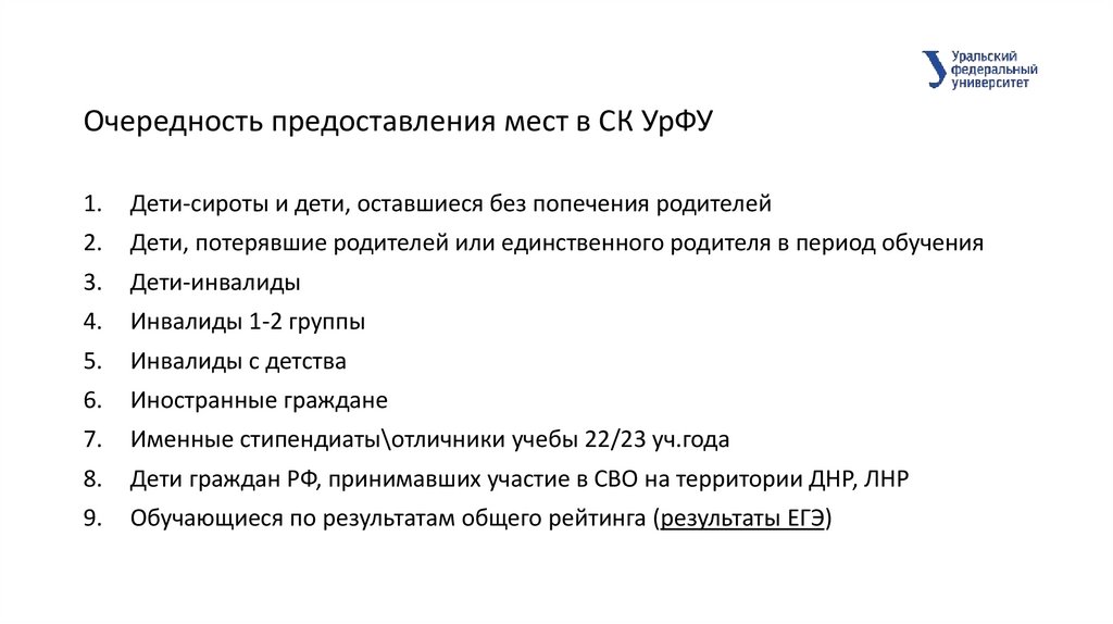 Очередность предоставления мест в СК УрФУ1.