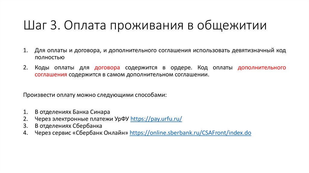 • Шаг 3. Оплата проживания в общежитии