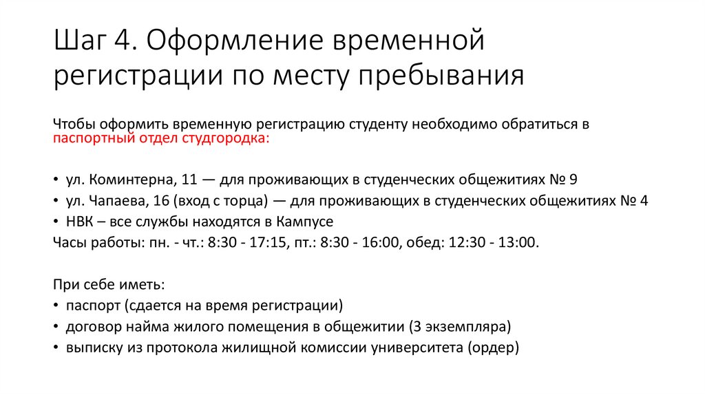 • Шаг 4. Оформление временной регистрации по месту