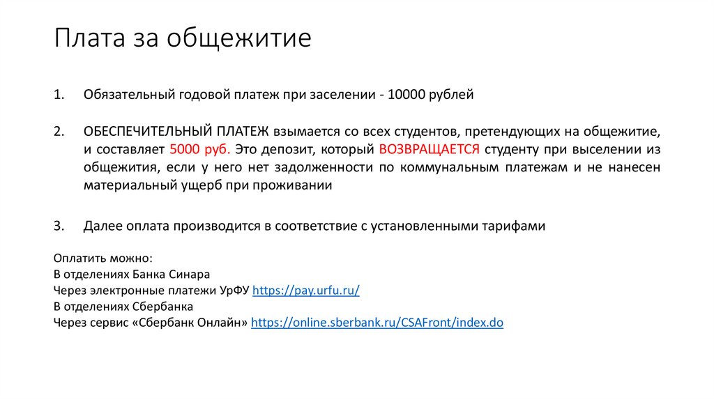 ОБЕСПЕЧИТЕЛЬНЫЙ ПЛАТЕЖ взымается со всех студентов, претендующих на общежитие,