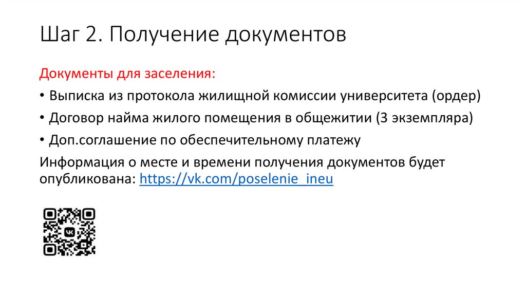 Шаг 2. Получение документовДокументы для заселения: