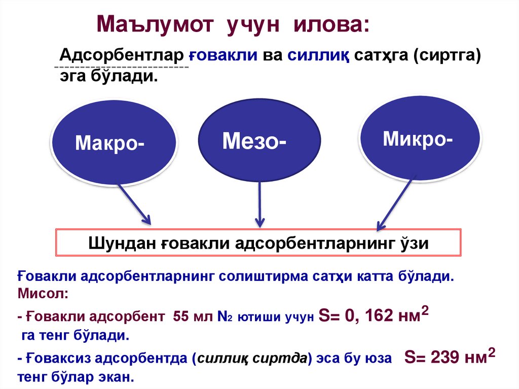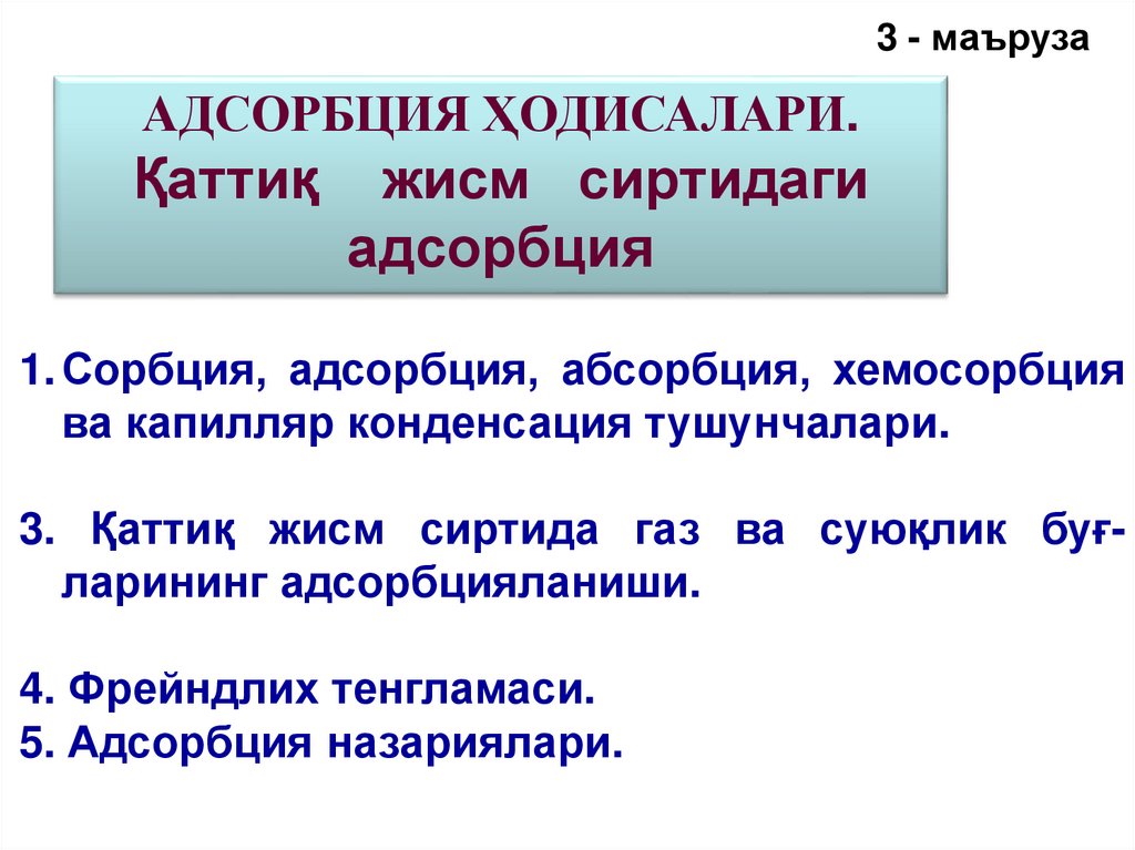 3 - маърузаAДСОРБЦИЯ ҲОДИСАЛАРИ.