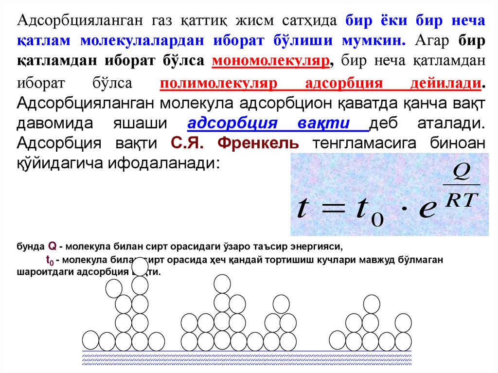 асосан адсорбцияланган молекулалар қават-қават бўлиб жойлашади.