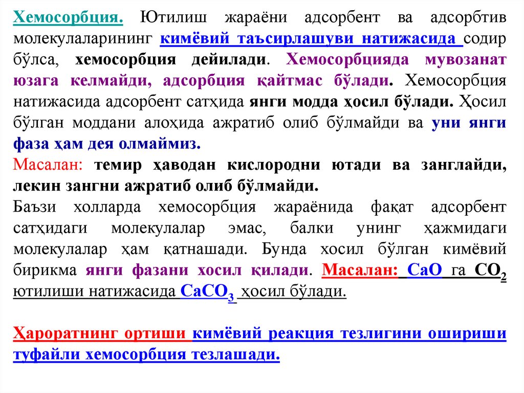 sodir bo‘lsa xemosorbsiya deyiladi.