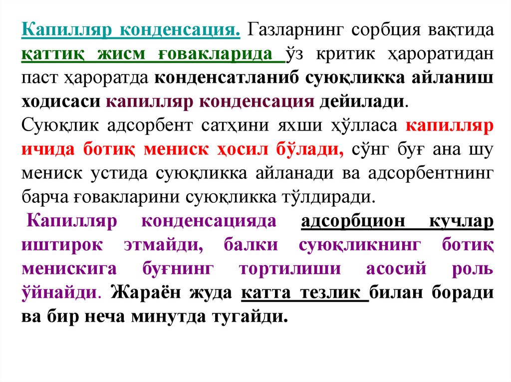 ва капилляр конденсация тушунчалари.