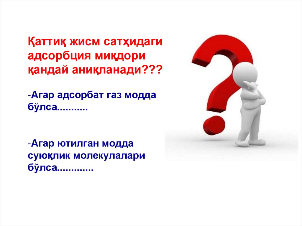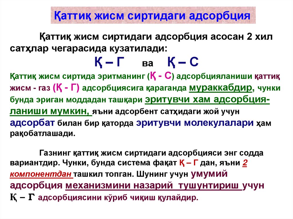 Aдсорбция ҳодисалари. Қаттиқ жисм сиртидаги адсорбция. 3 - маъруза