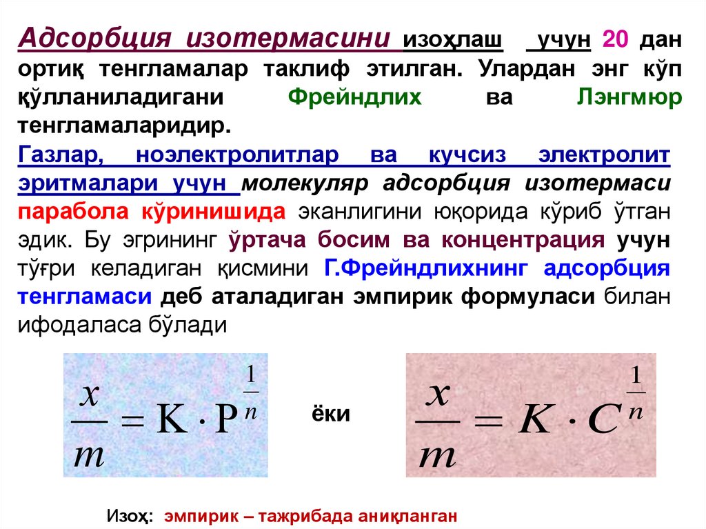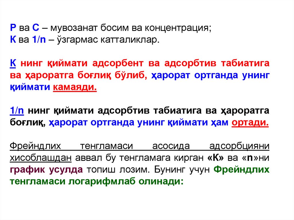 4. Фрейндлих тенгламаси.