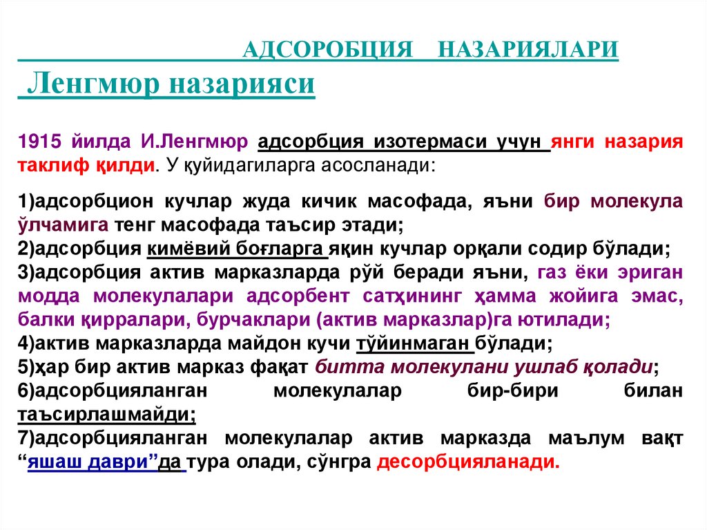 5. Адсорбция назариялари.