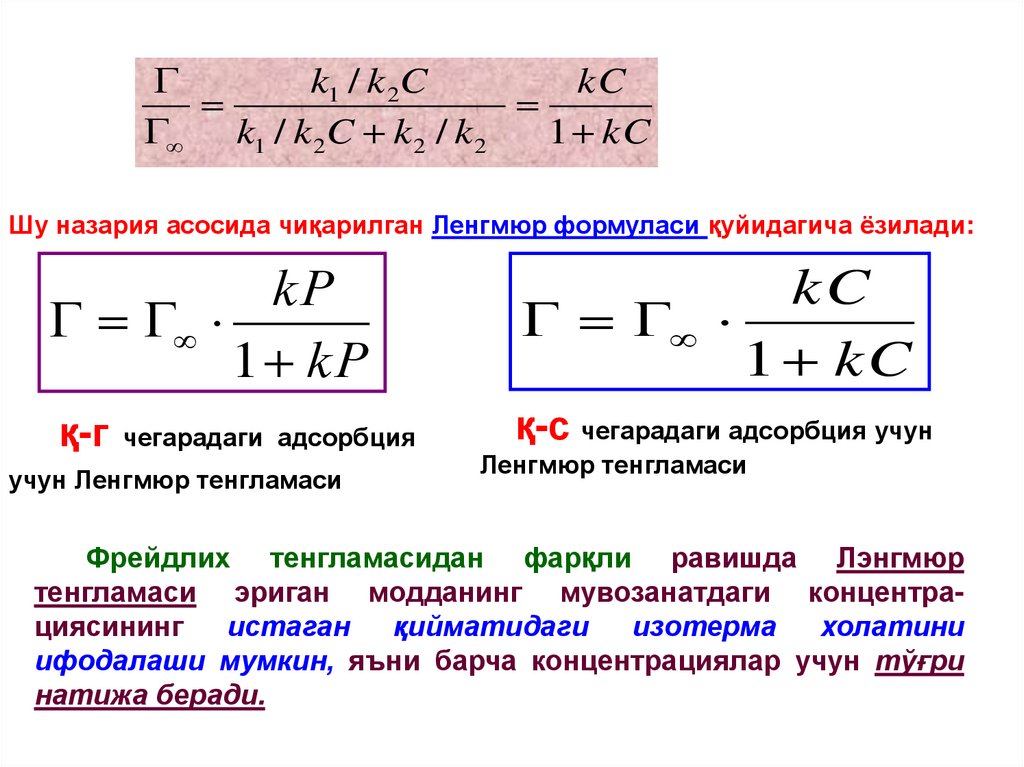 кўринади, аслида эса улар бир-бирини тўлдиради. Ленгмюр назарияси