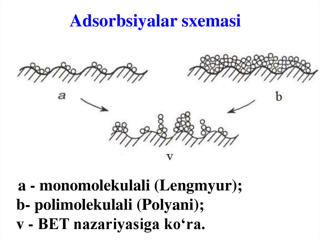 Adsorbsiyalar sxemasia - monomolekulali (Lengmyur);