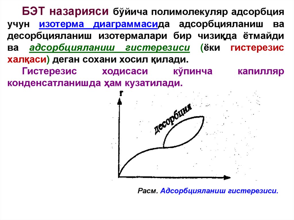 ва адсорбцияланиш гистерезиси (ёки гистерезис