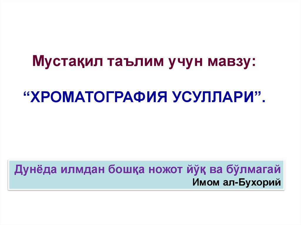 Мустақил таълим учун мавзу:“ХРОМАТОГРАФИЯ УСУЛЛАРИ”.