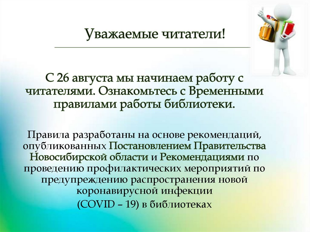 Временные правила работы с читателями, принятые МКУК Ордынская ЦБС в связи с угрозой covid-19
