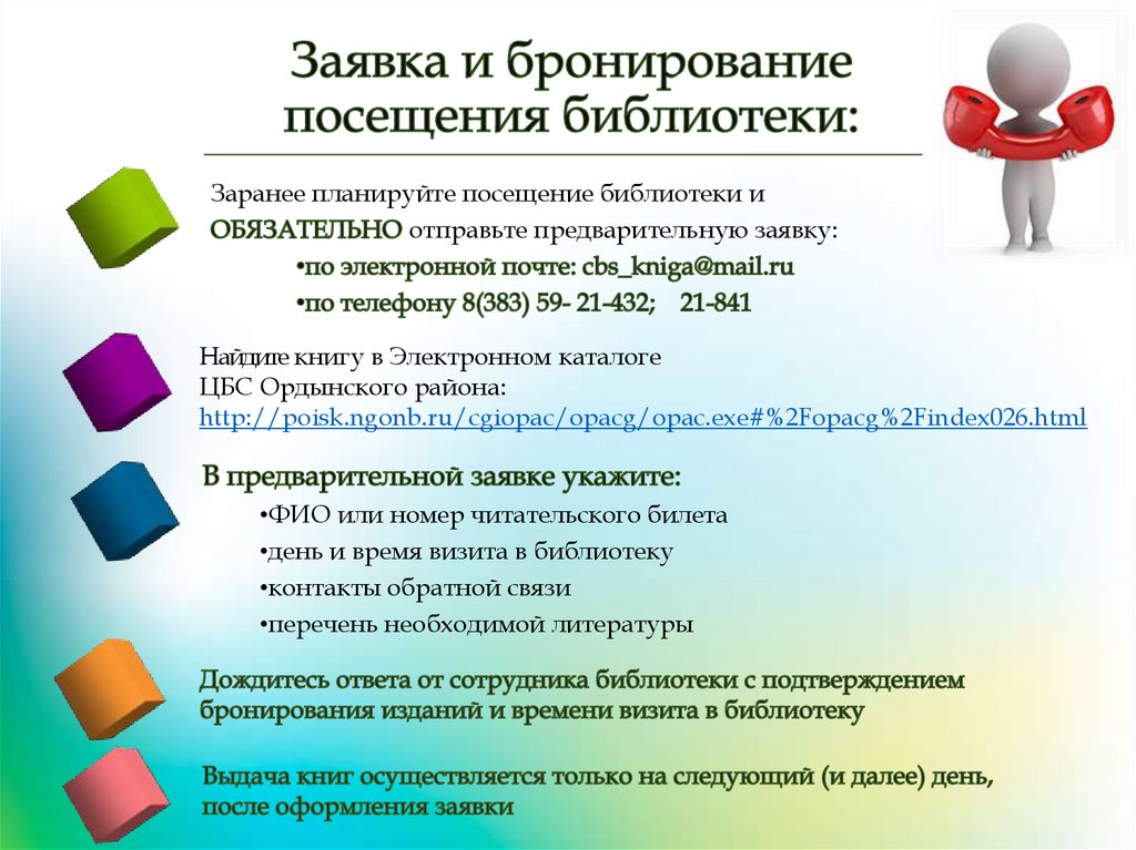 Заранее планируйте посещение библиотеки иотправьте предварительную заявку: