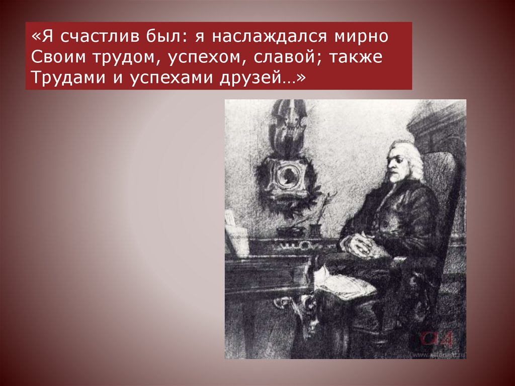 «Я счастлив был: я наслаждался мирноСвоим трудом, успехом, славой; также