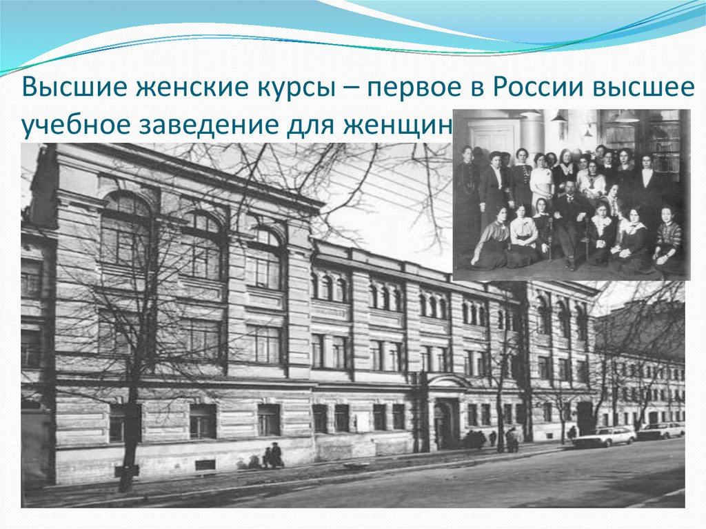 Высшие женские курсы – первое в России высшееучебное заведение для женщин.