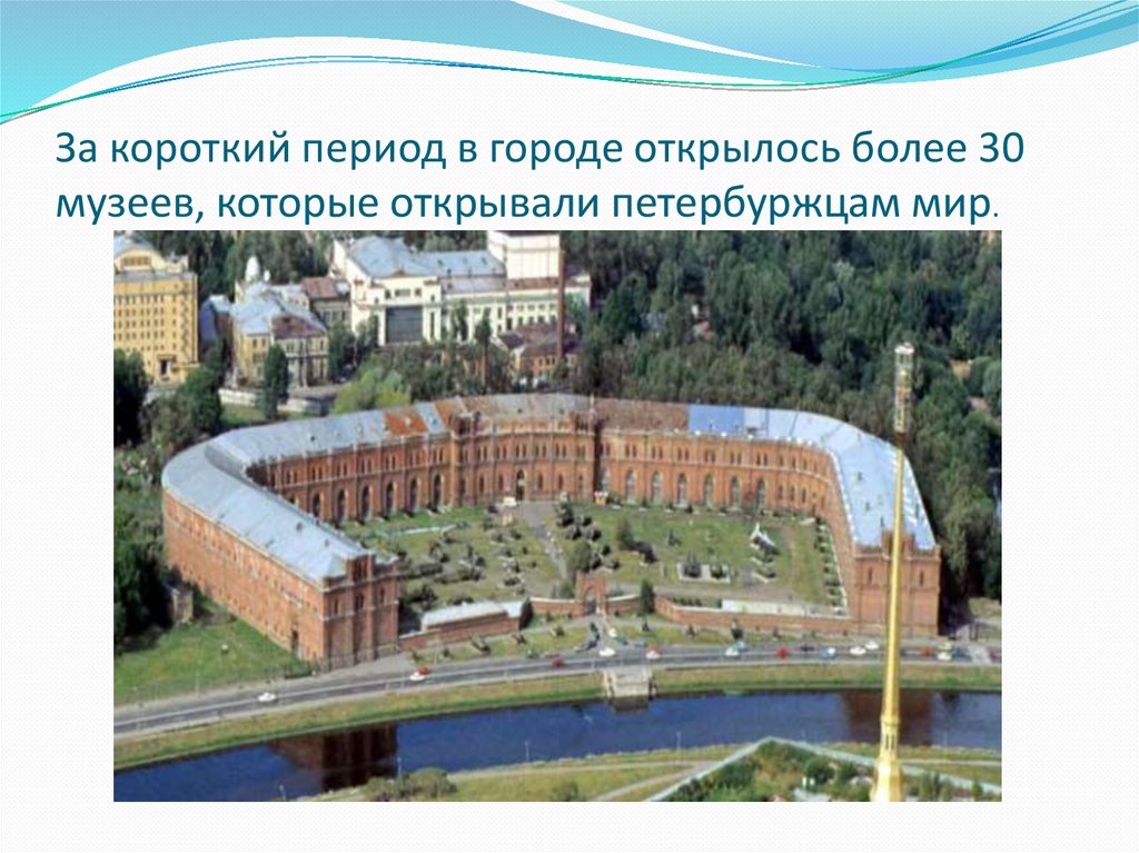 За короткий период в городе открылось более 30музеев, которые открывали петербуржцам мир.