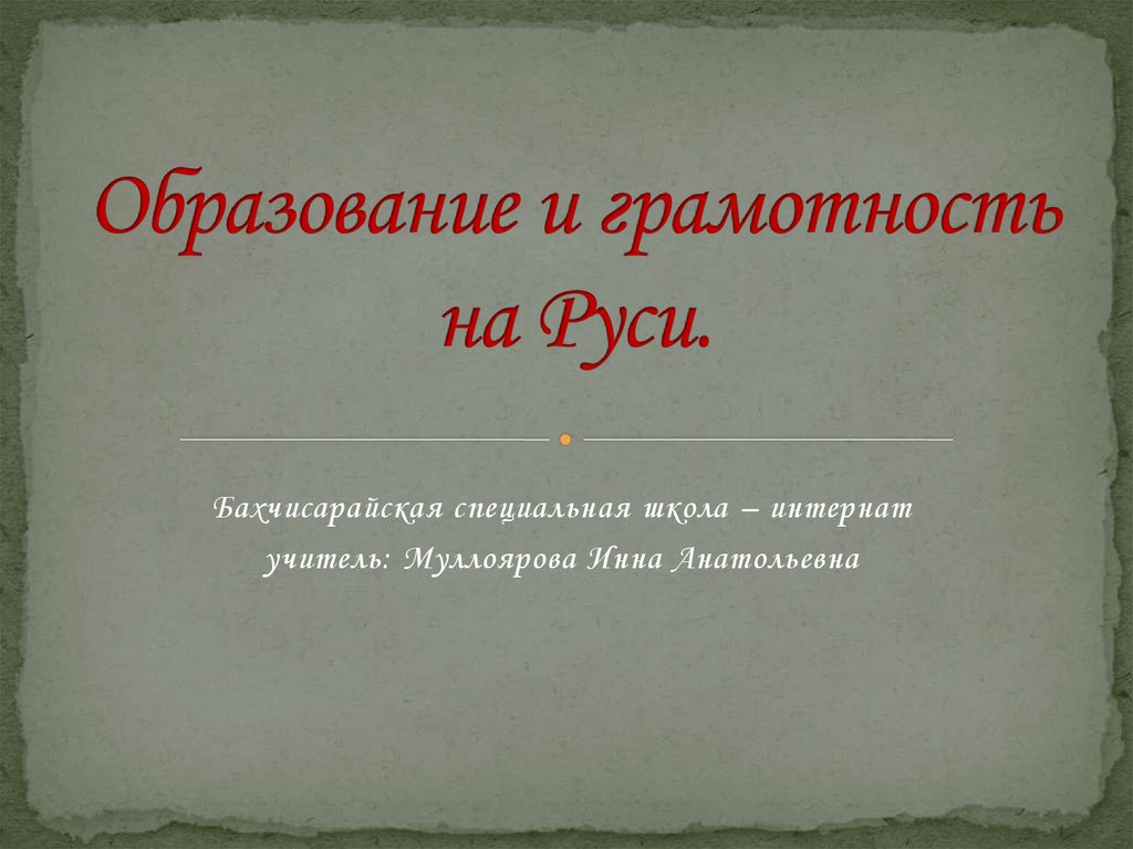 Бахчисарайская специальная школа – интернатучитель: Муллоярова Инна Анатольевна