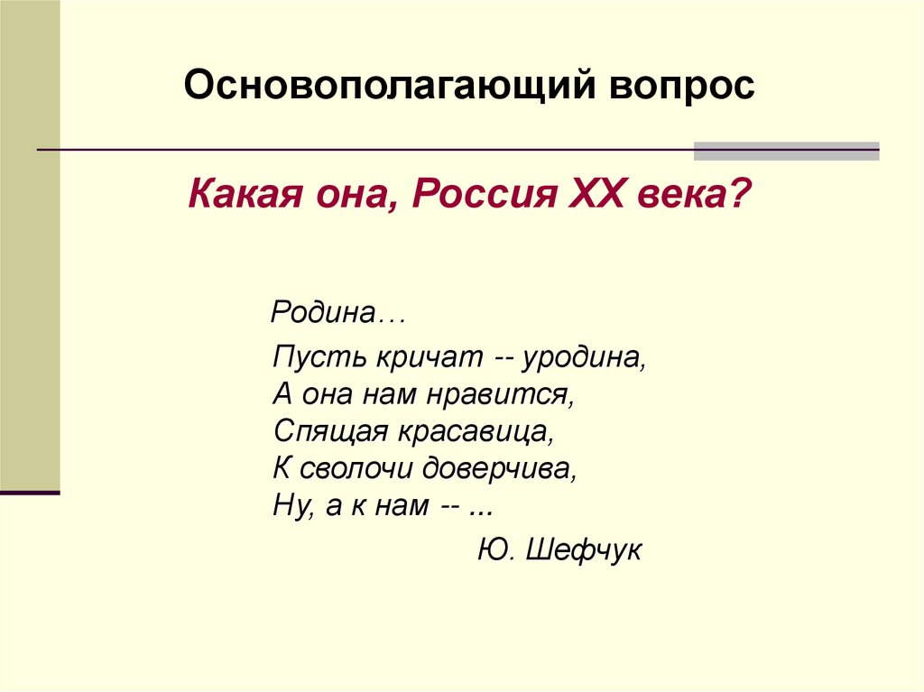 Основополагающий вопросКакая она, Россия ХХ века?
