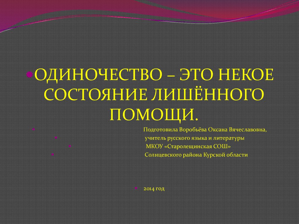 ОДИНОЧЕСТВО – ЭТО НЕКОЕСОСТОЯНИЕ ЛИШЁННОГО
