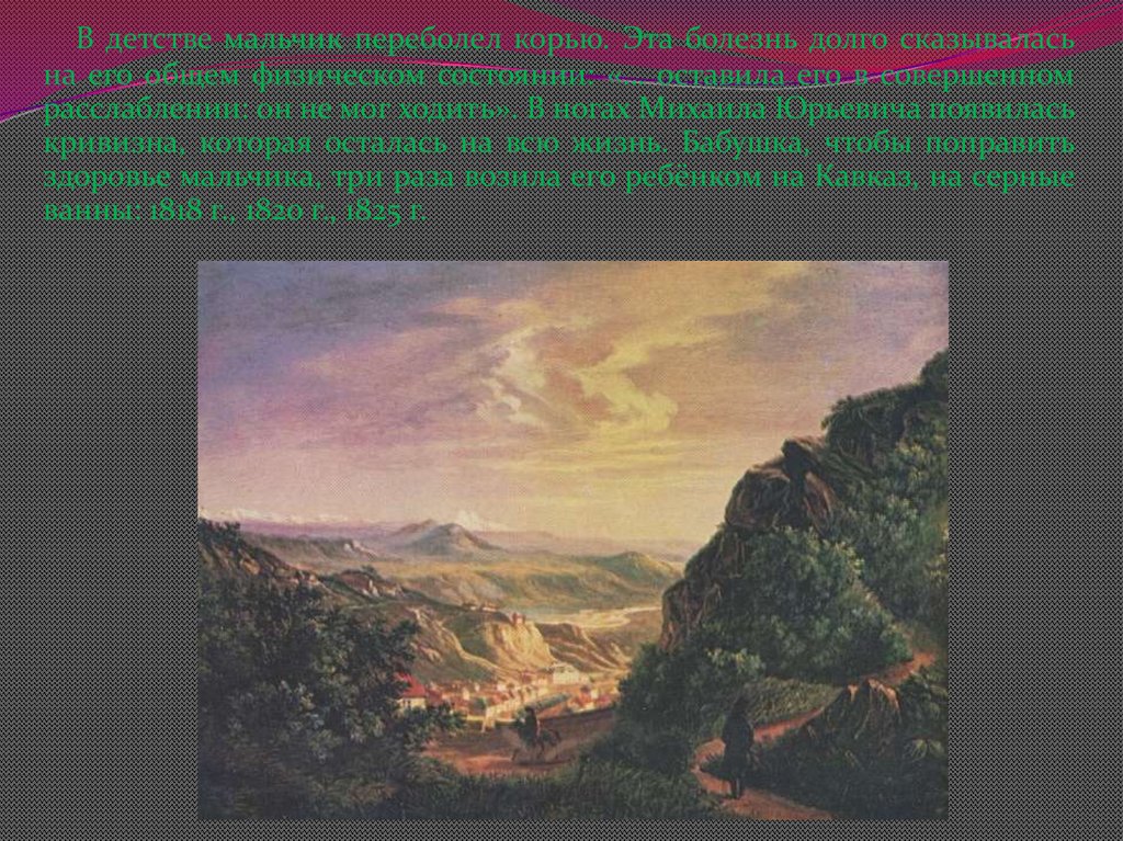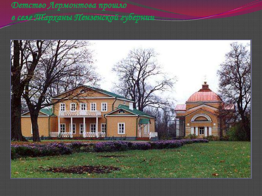 Детство Лермонтова прошлов селе Тарханы Пензенской губернии